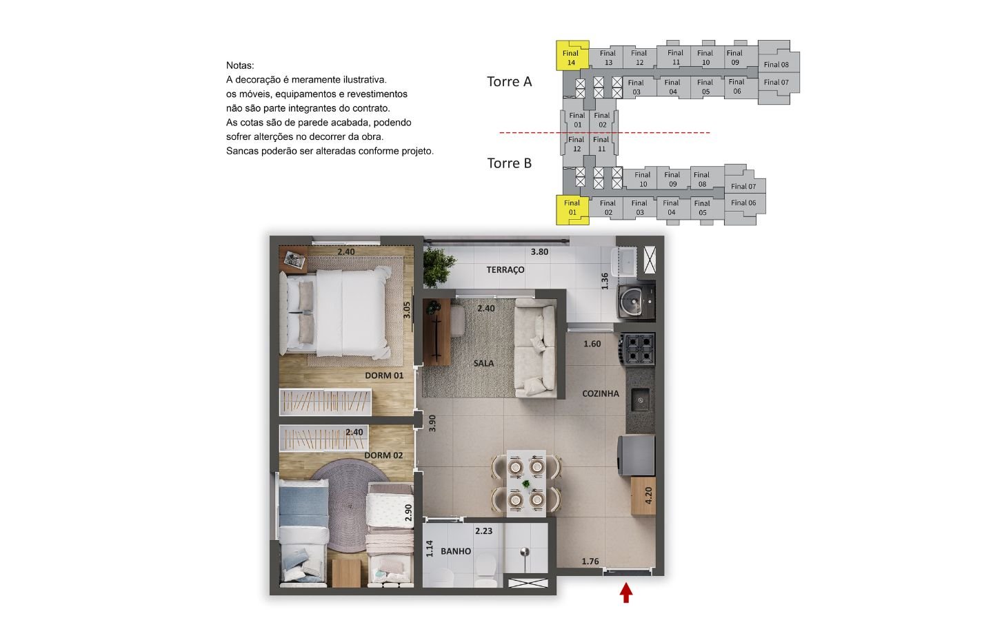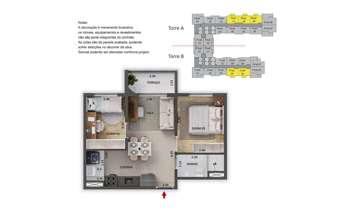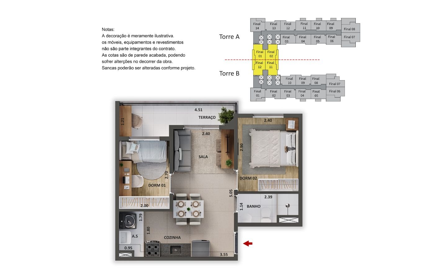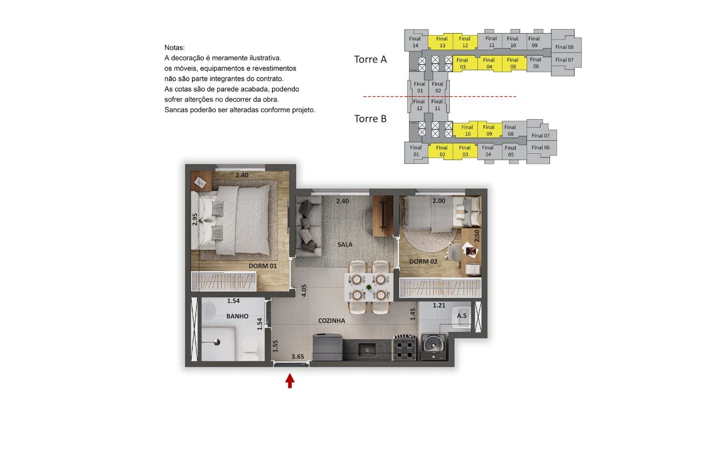 32 a 45m², entrada a partir de R$ 800,00. Entrega em 36 meses.